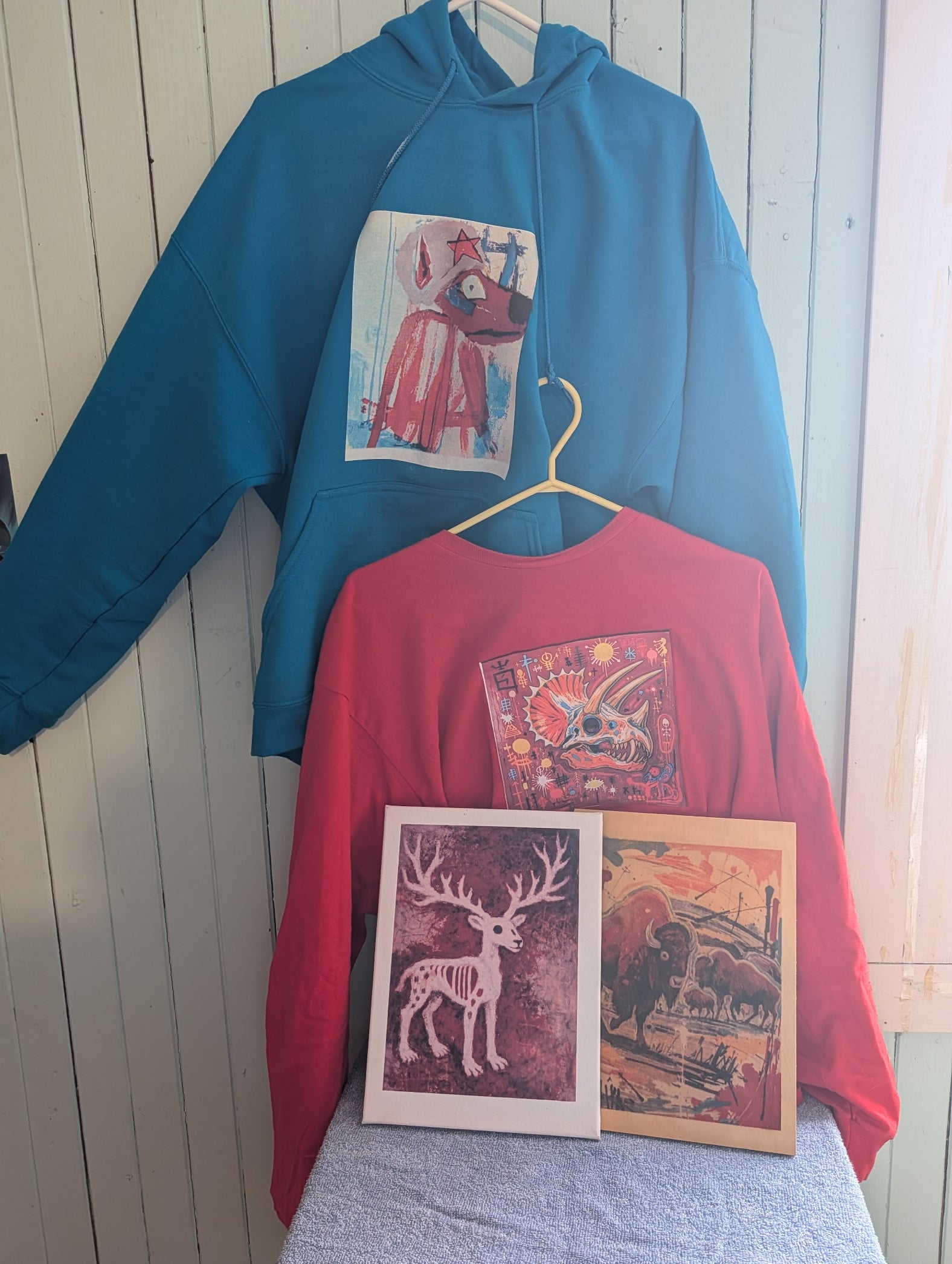 Atelier Triceratop, c’est une peinture brute et du dessin numérique, qui devienne image à porter et à vivre.
